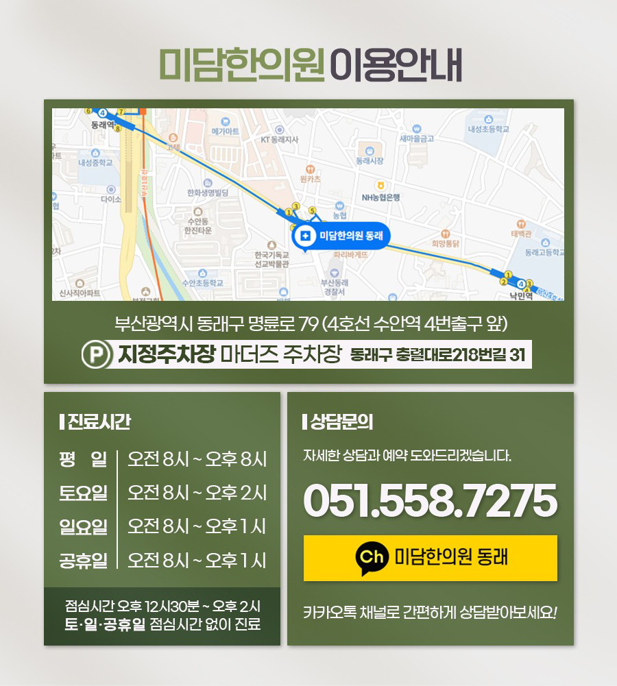 µ¿·¡ ¹Ì´ãÇÑÀÇ¿øÀº ÆòÀÏ ¿ÀÀü 8½ÃºÎÅÍ Àú³á 8½Ã±îÁö ¾ÆÄ§¡¤¾ß°£Áø·á¸¦ ½ÃÇàÇϸç, Åä¿äÀϰú ÀÏ¿äÀÏ, °øÈÞÀÏ¿¡µµ Áø·áÇÏ¿© Á÷ÀåÀΰú Çлýµéµµ ºÎ´ã ¾øÀÌ ³»¿øÇÏ½Ç ¼ö ÀÖ½À´Ï´Ù.