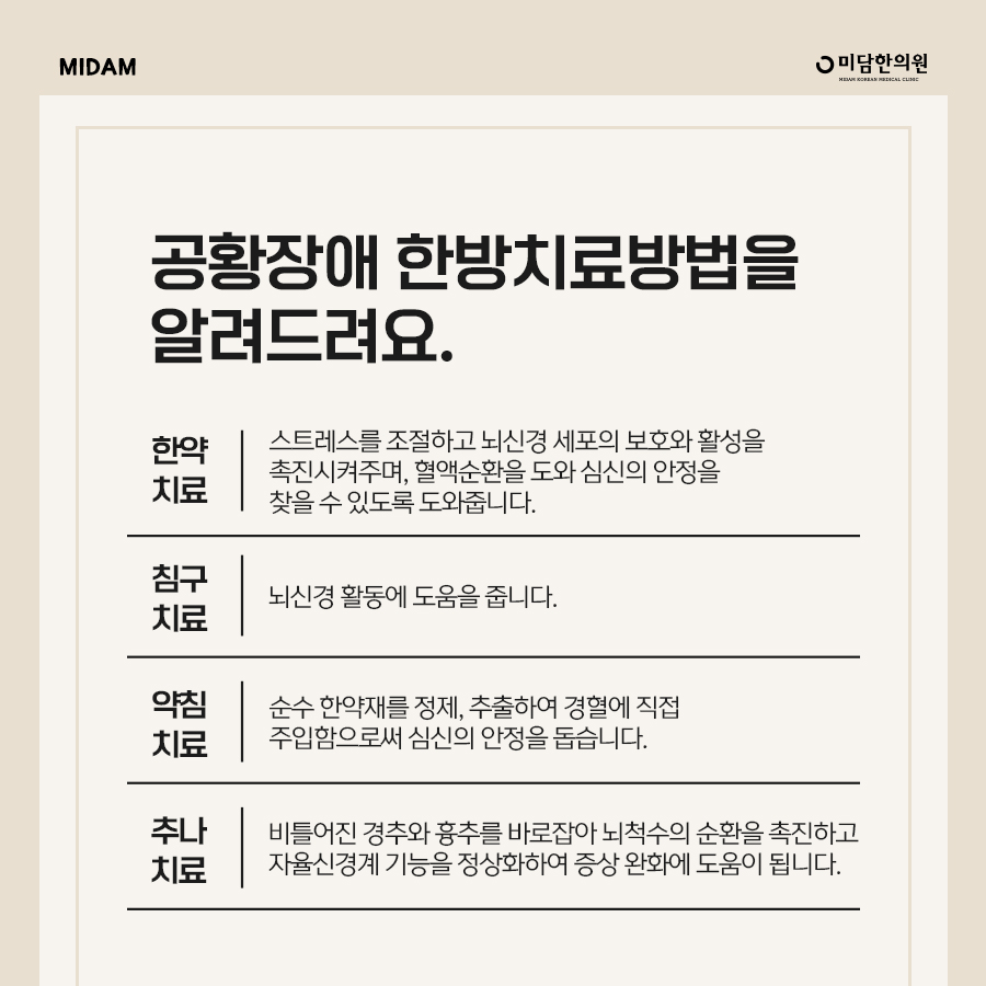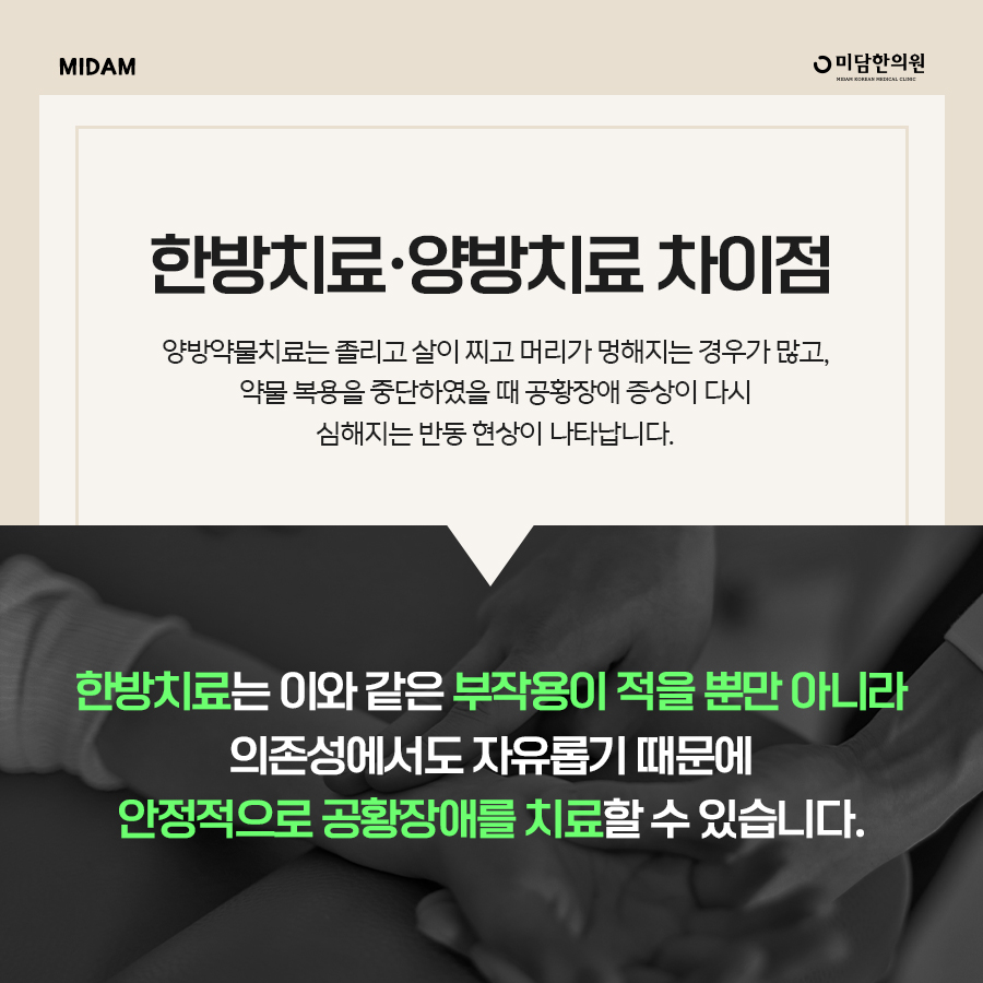 Oriental medicine treatment not only has few side effects but also is free from dependence, so panic disorder can be treated stably.
