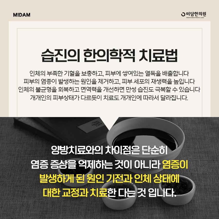 Oriental medicine does not simply suppress inflammatory symptoms, but corrects and treats the cause mechanism and human condition of inflammation.