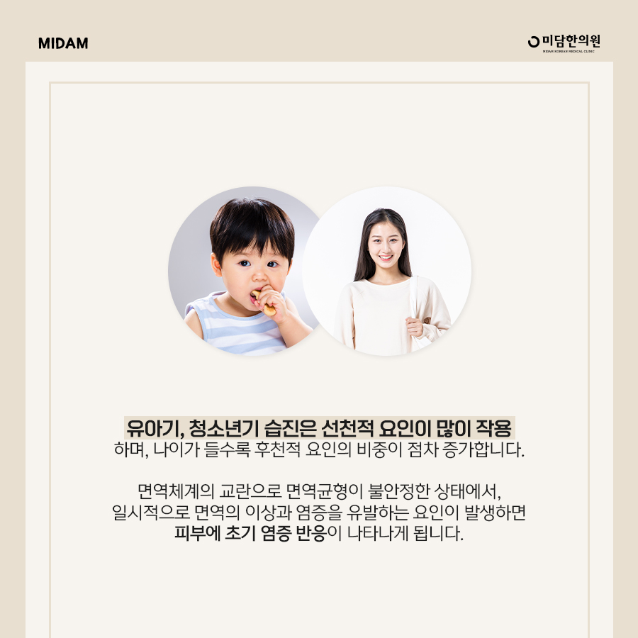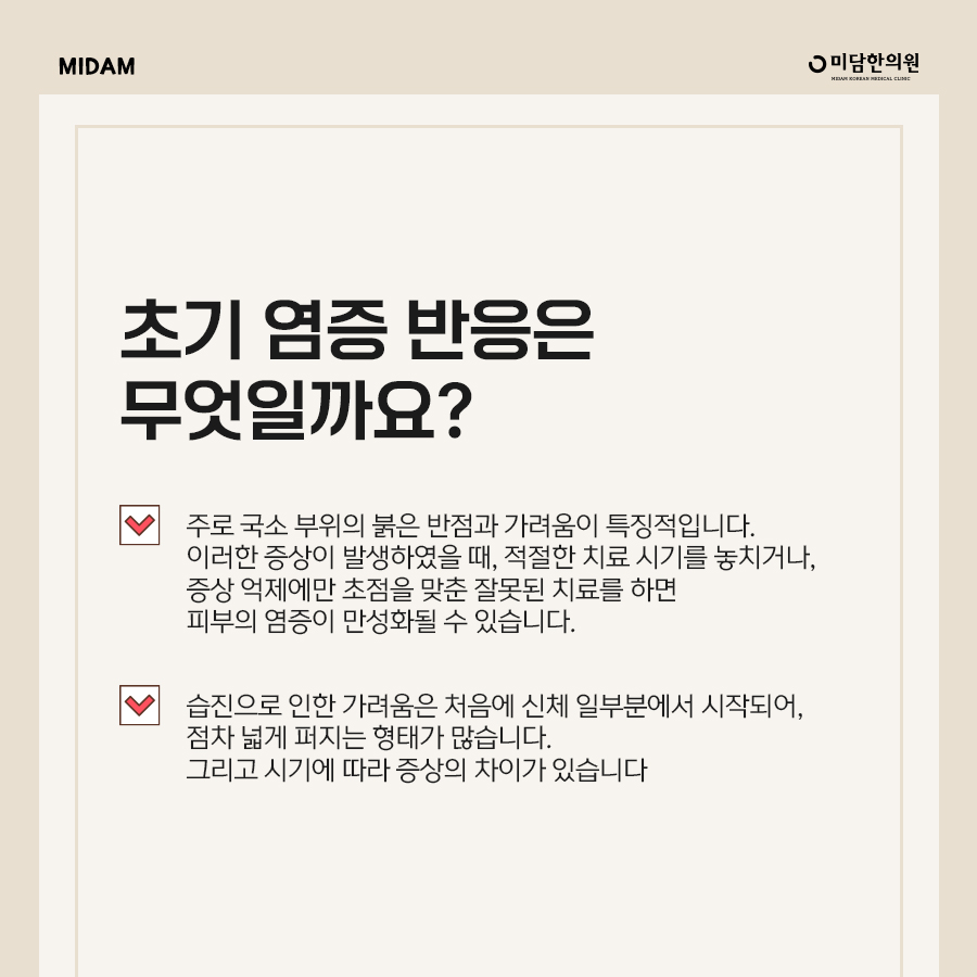 Initial inflammatory reactions appear on the skin when factors that temporarily cause immune abnormalities and inflammation occur while the immune balance is unstable due to disturbance of the immune system.