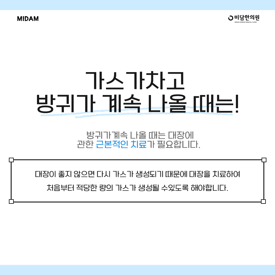 Hello, I'm Midam Korean Medical Center. Some of the people who visit our hospital, which can treat digestive diseases intensively, come to our hospital due to frequent farting problems.